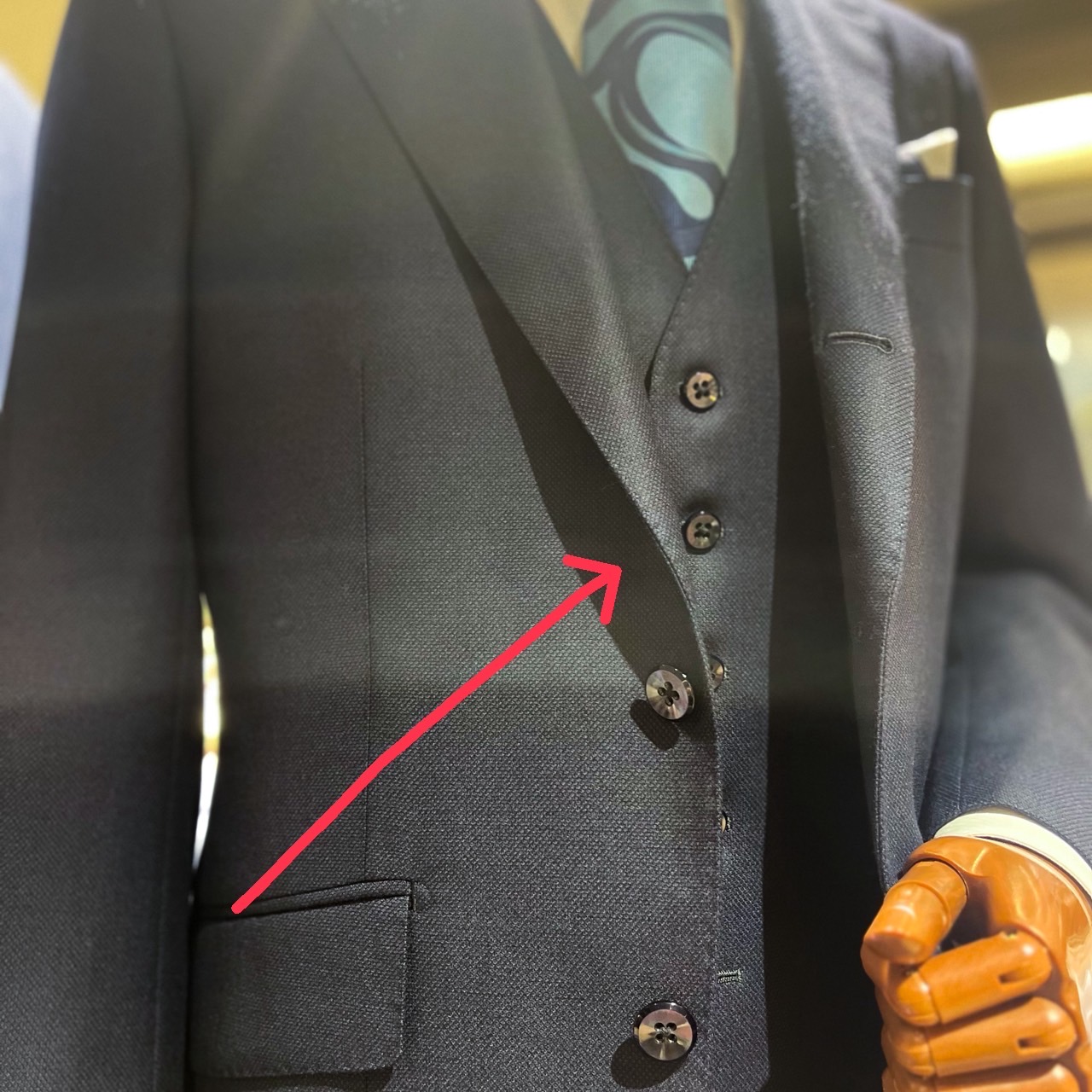 フォーマル用のジャケットはステッチを入れないのがマナーですのでお気を付けください。