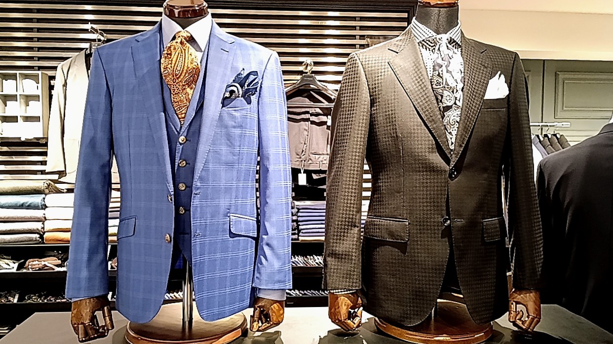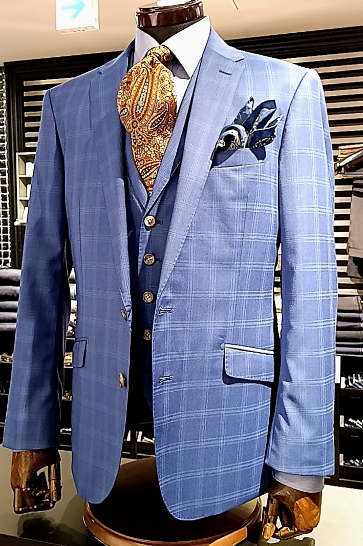 例として、人気のブルーチェックスーツをベースに、