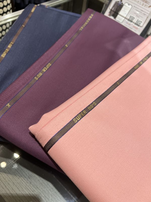 この他にも新作生地では、定番のネイビーやチェック柄など多々ご用意ございますので