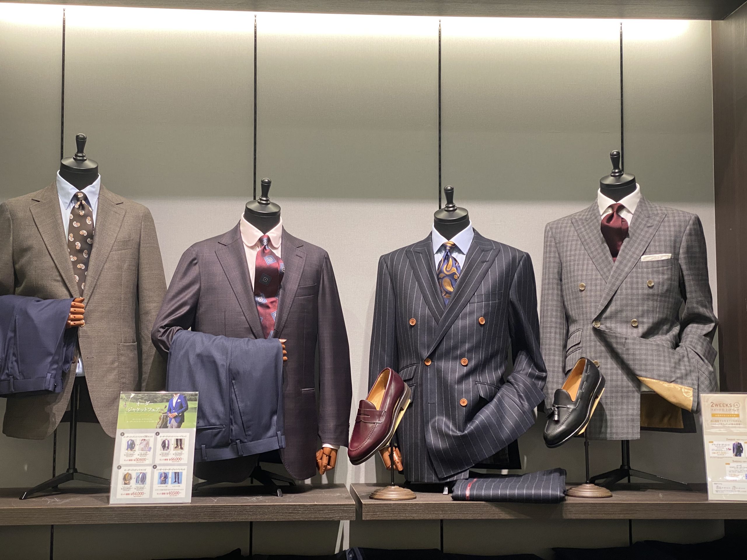 ダブルジャケットスーツも需要が高まってくる為、比較しやすいように置いています。