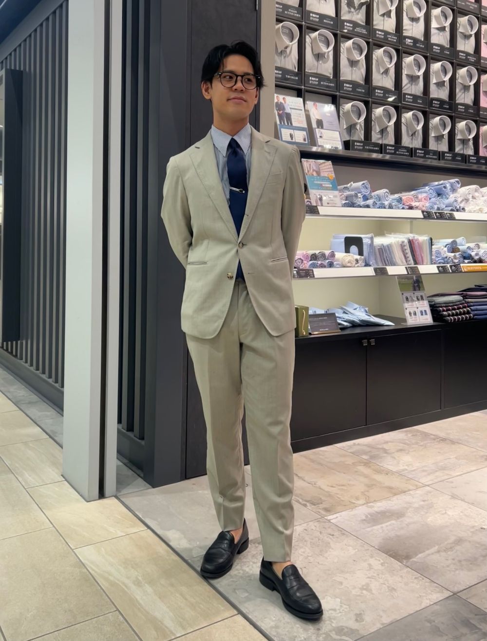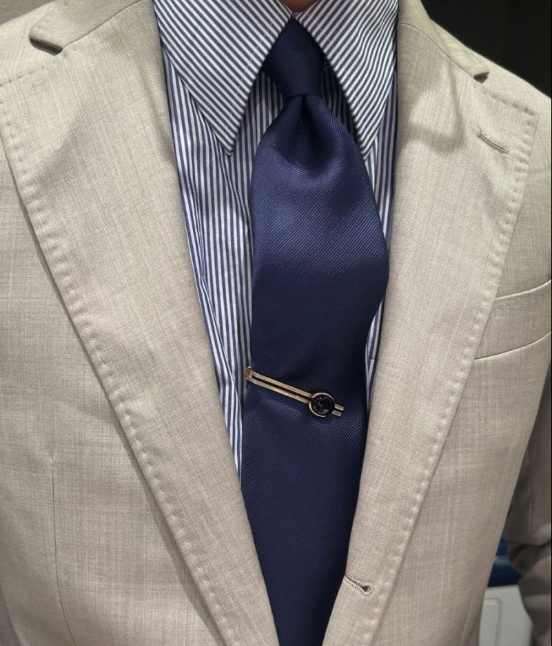 あえてネクタイピンでカチッと締めたのがポイントとのことです!