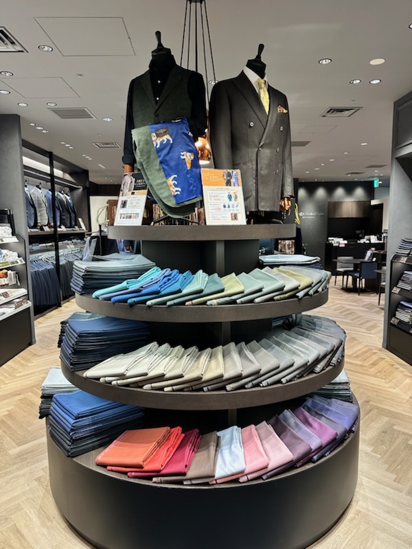 かなり攻めた生地があり、釦や裏地もお選びいただけるので自分だけのオーダースーツが仕上がります!