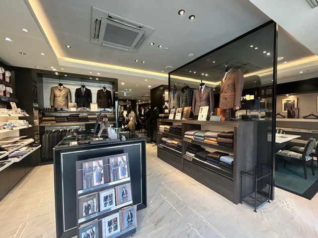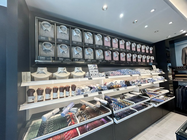 入口戻りまして左手には、「オーダーシャツ」「ネクタイ」