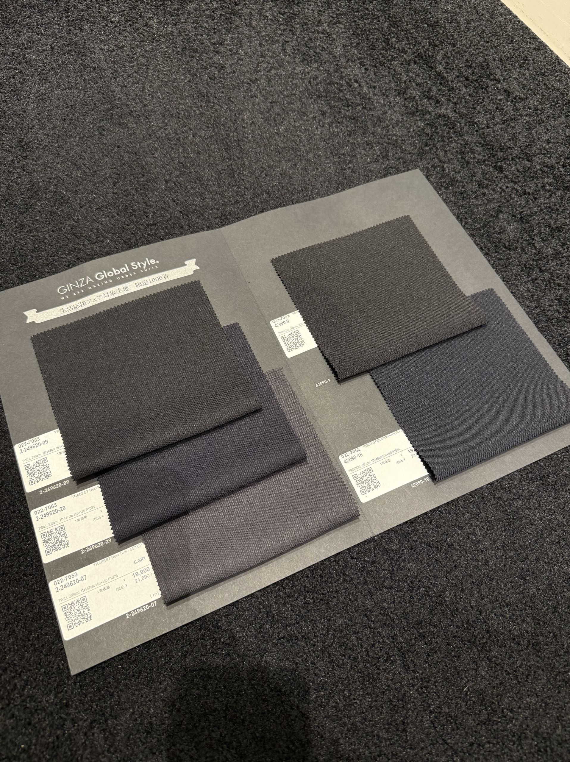 店頭にて実際の生地やモデルをご覧いただけますので