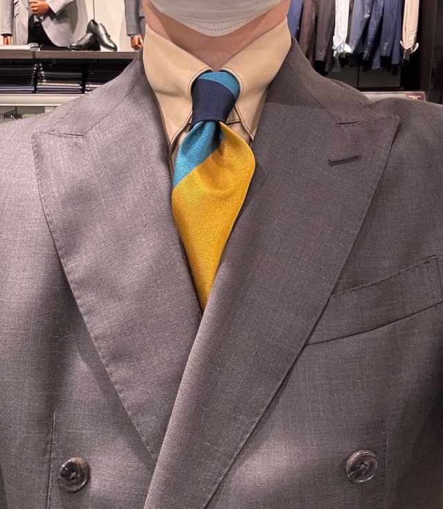 個人的にブルーとネイビーとイエローのレジメンタルタイのネクタイ気に入ってます(笑)