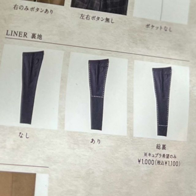 ¥1,100(税込)頂きますと、裏地の素材をキュプラに変更可能です!