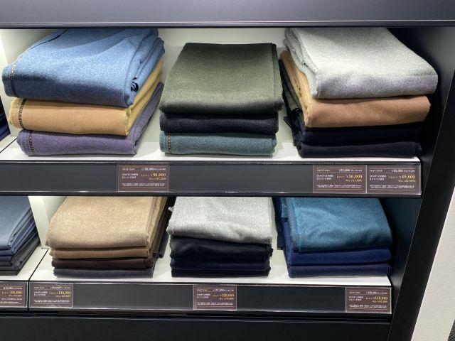 ウール100%(49,000~)とカシミア100%(148,000~)の生地をご用意しております!