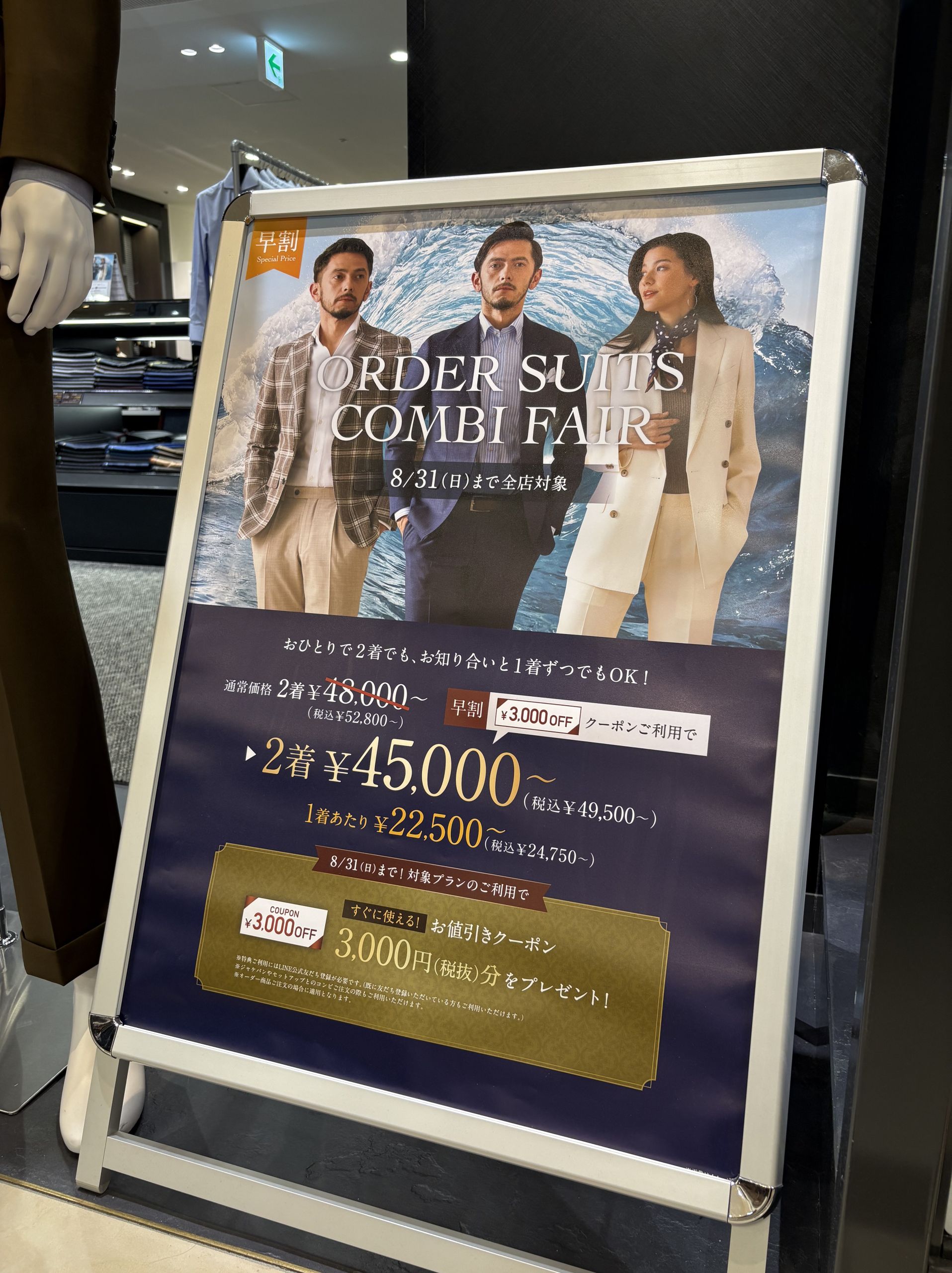 スーツ2着のオーダーで¥3,000OFFの超お得なフェアがついに終わっちゃいます(´;ω;`)
