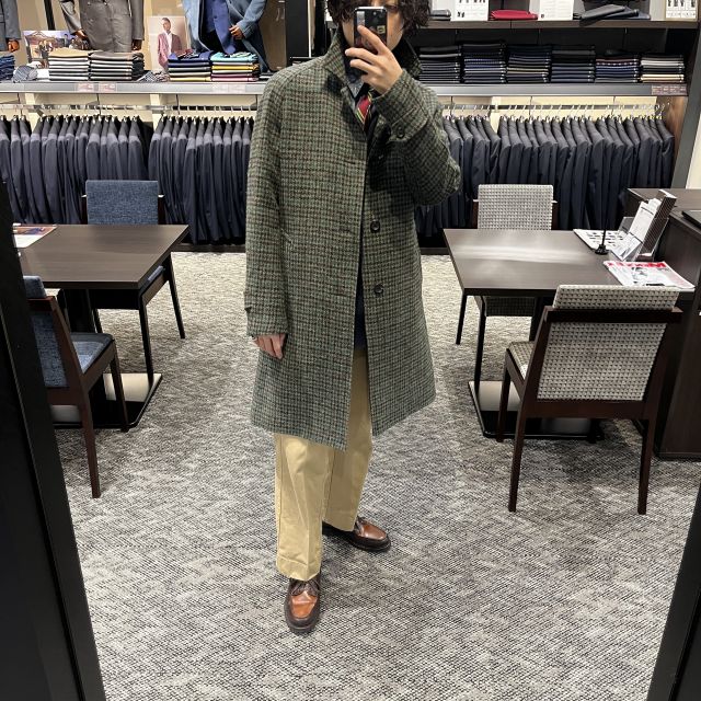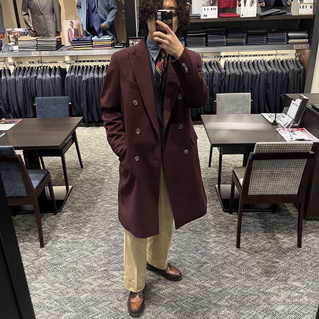 こちらは定番のチェスターコートでございます(シングル/ダブル選択可能です!)