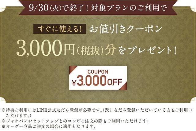 3,000円(税抜)OFFクーポンをプレゼント!