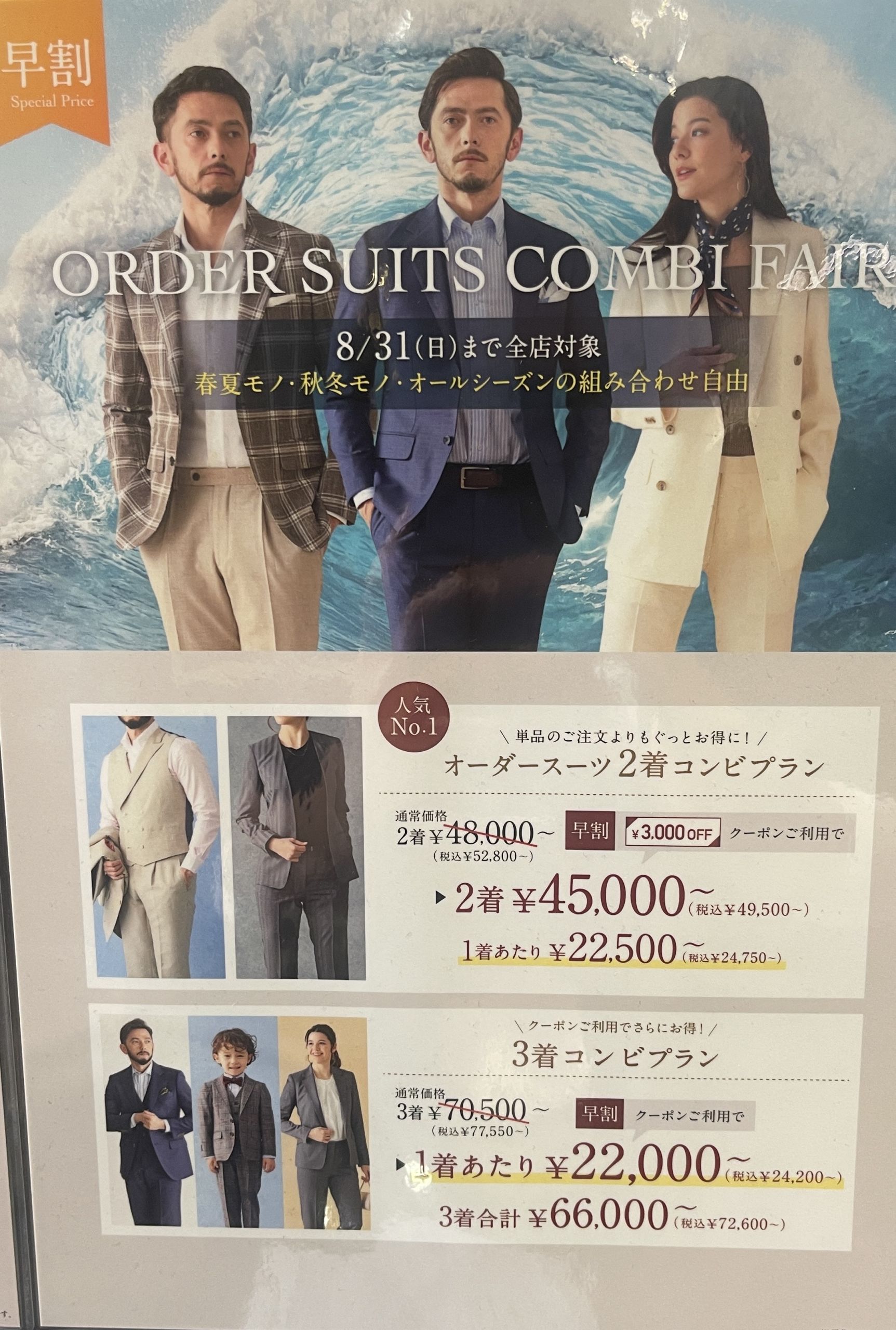 ■オーダースーツをお買い上げの方に、2時間分サービス券 をお渡しいたします。