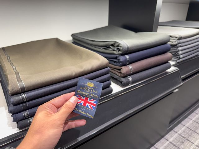 イギリス生地は耐久性に優れており、張りコシがある為シルエットも崩れにくく美しくなる一方、