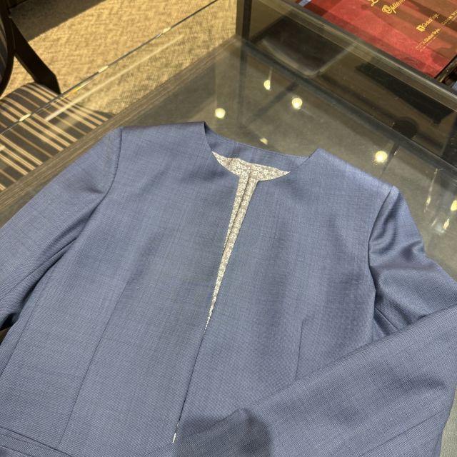 お仕立てするジャケットの形はノーカラー丸首がおすすめです!