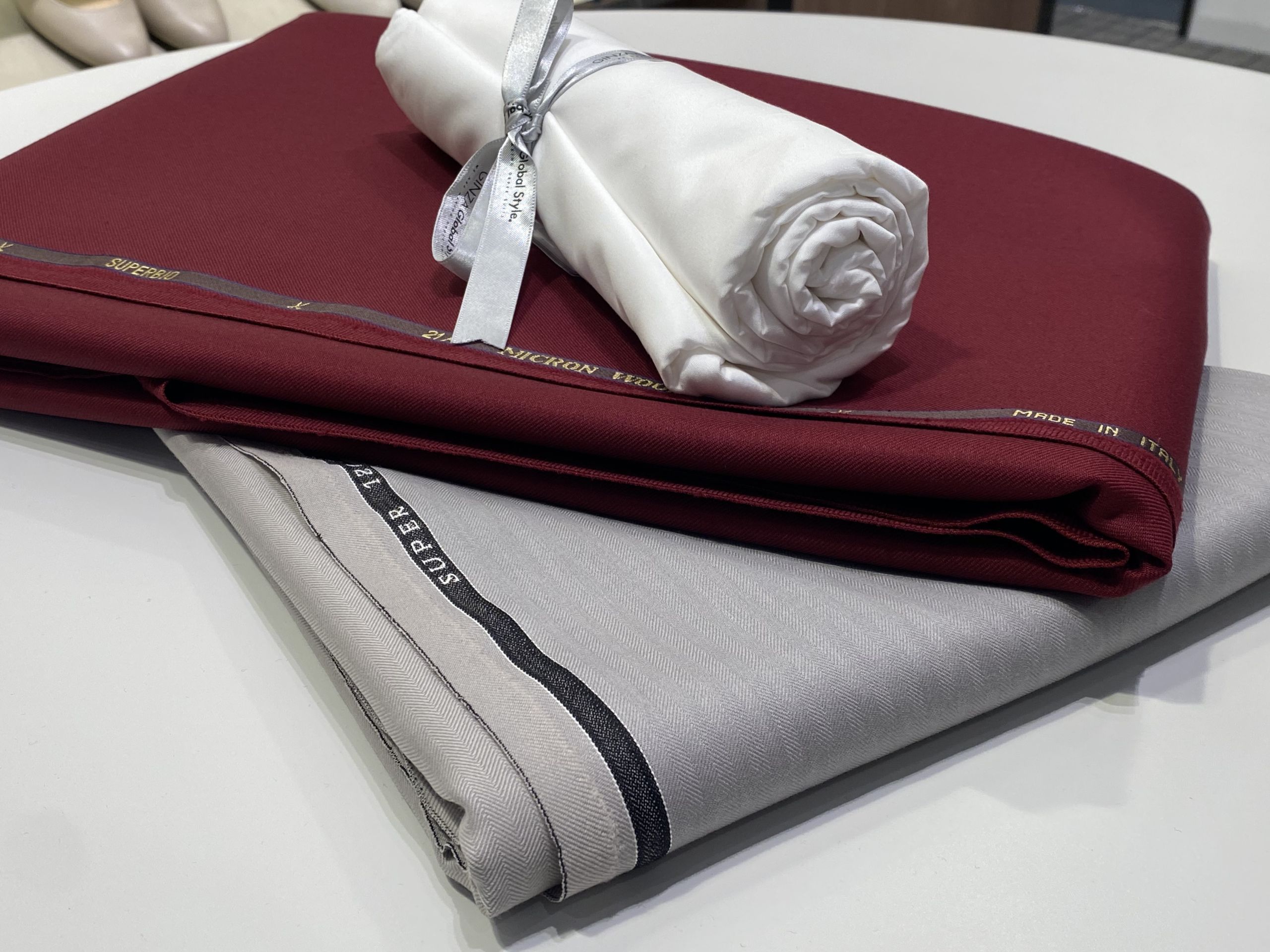 シャツに関しては紳士らしくパリッと光沢のある生地を選びました。