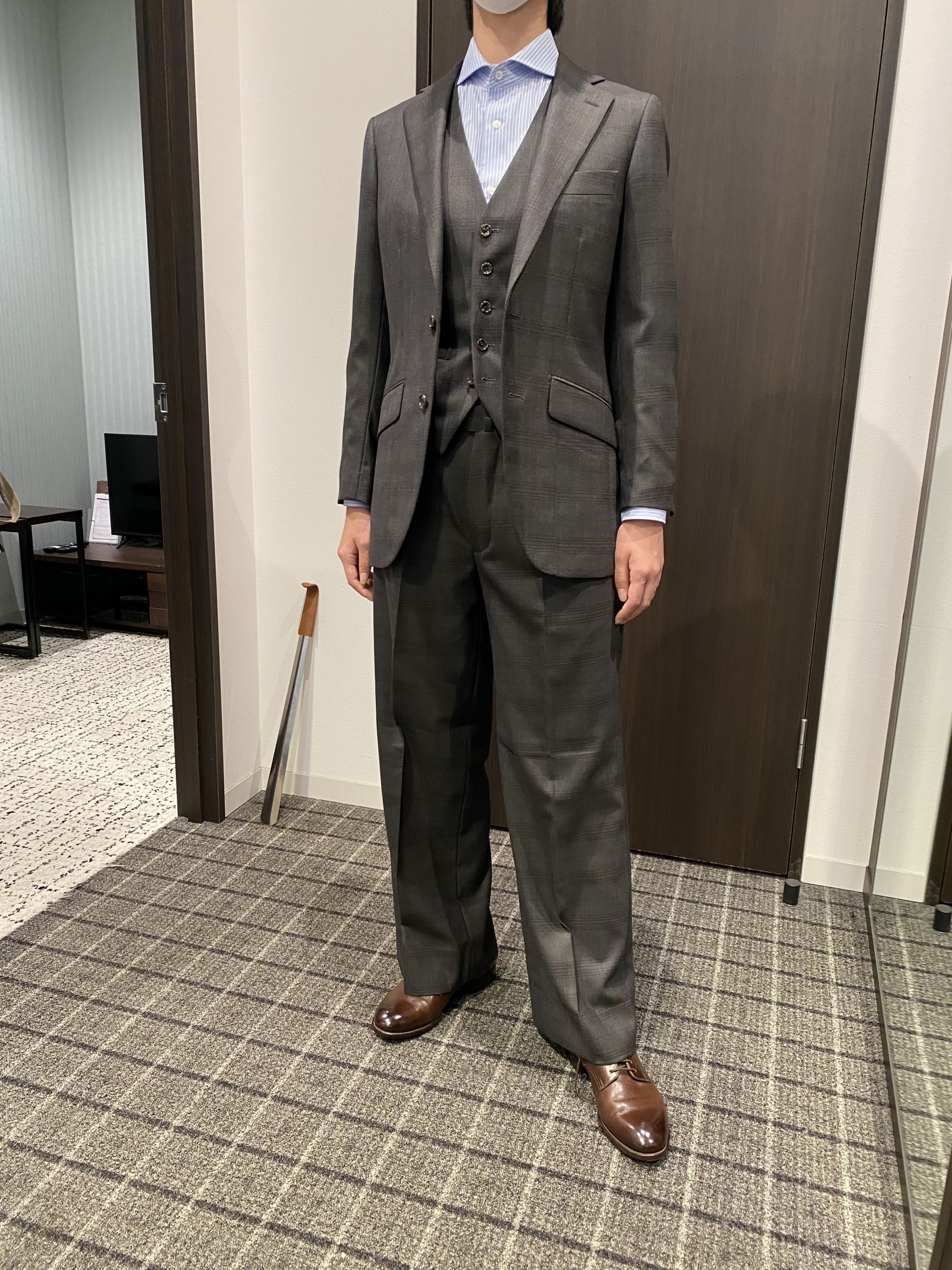 メンズライクでスリーピース。そしてスラックスは太めのラインがご希望でした。
