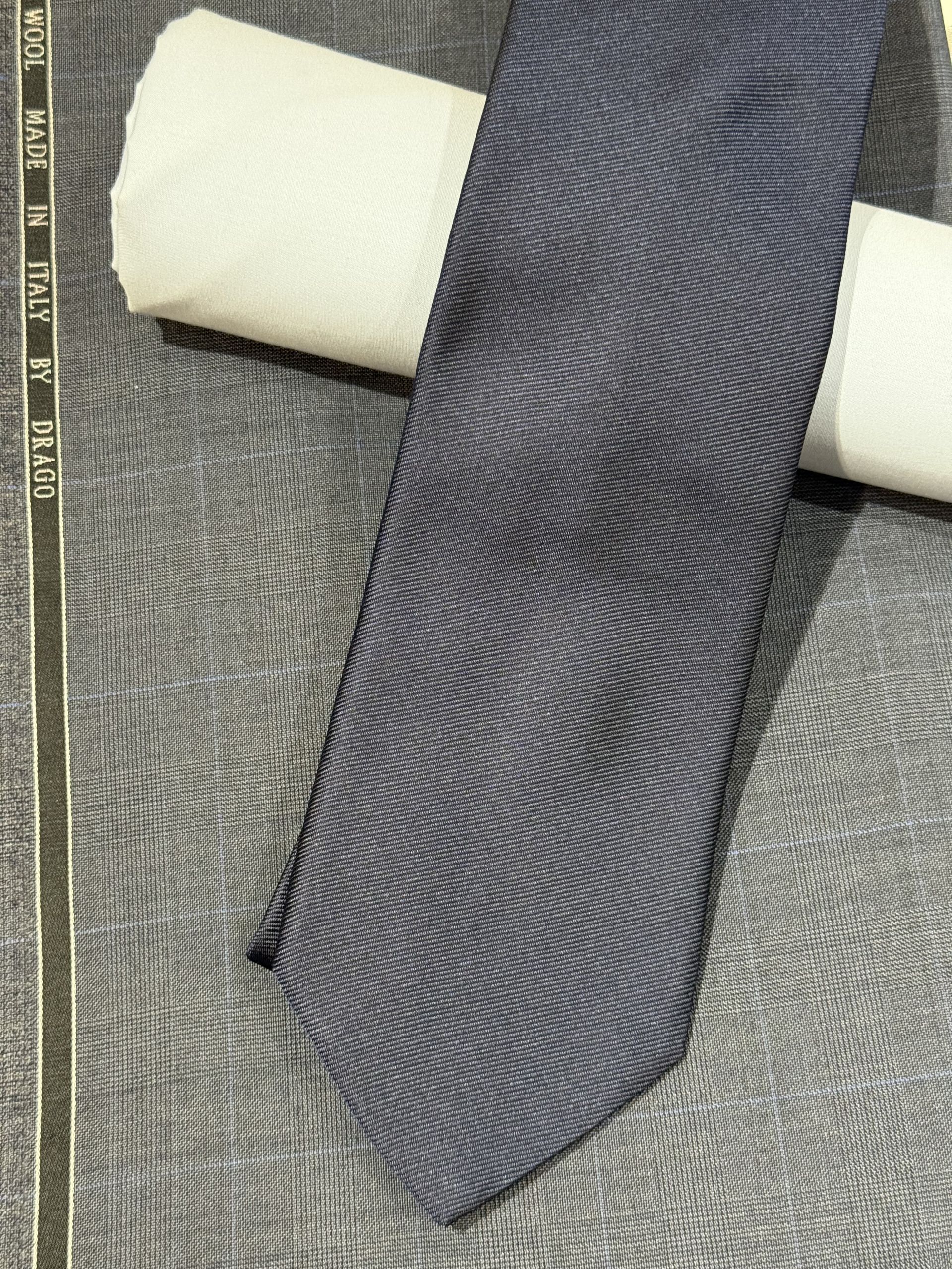 サックスブルーのシャツにネイビーのソリッドタイを合わせれば、秋冬向けのワントーンコーディネートが完成します。