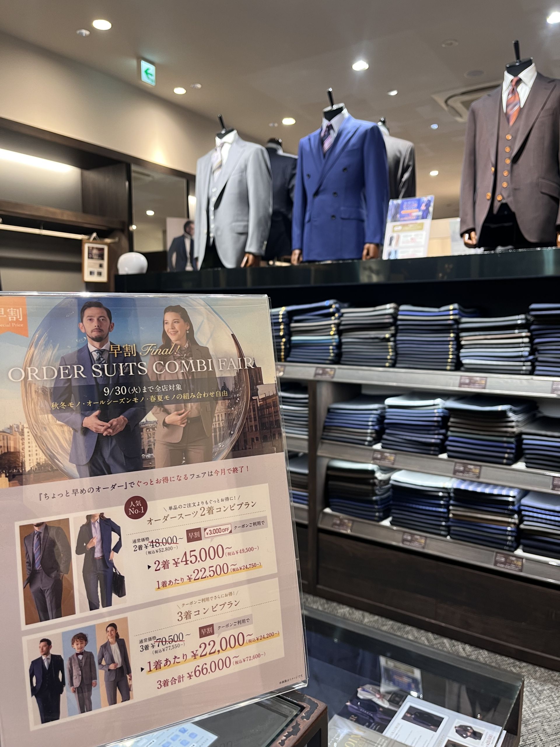 2着スーツオーダーにて3,000円のお値引きができます!