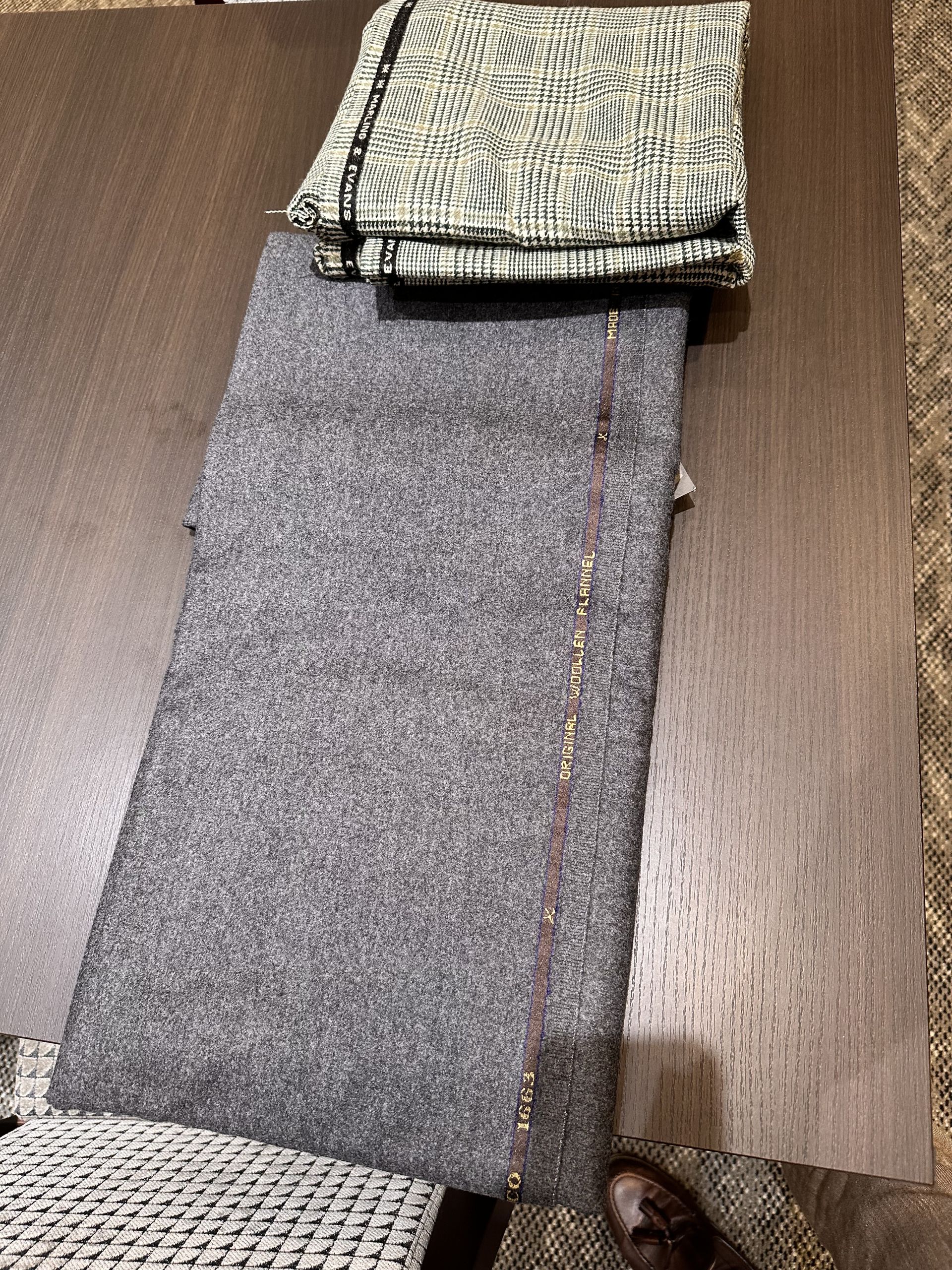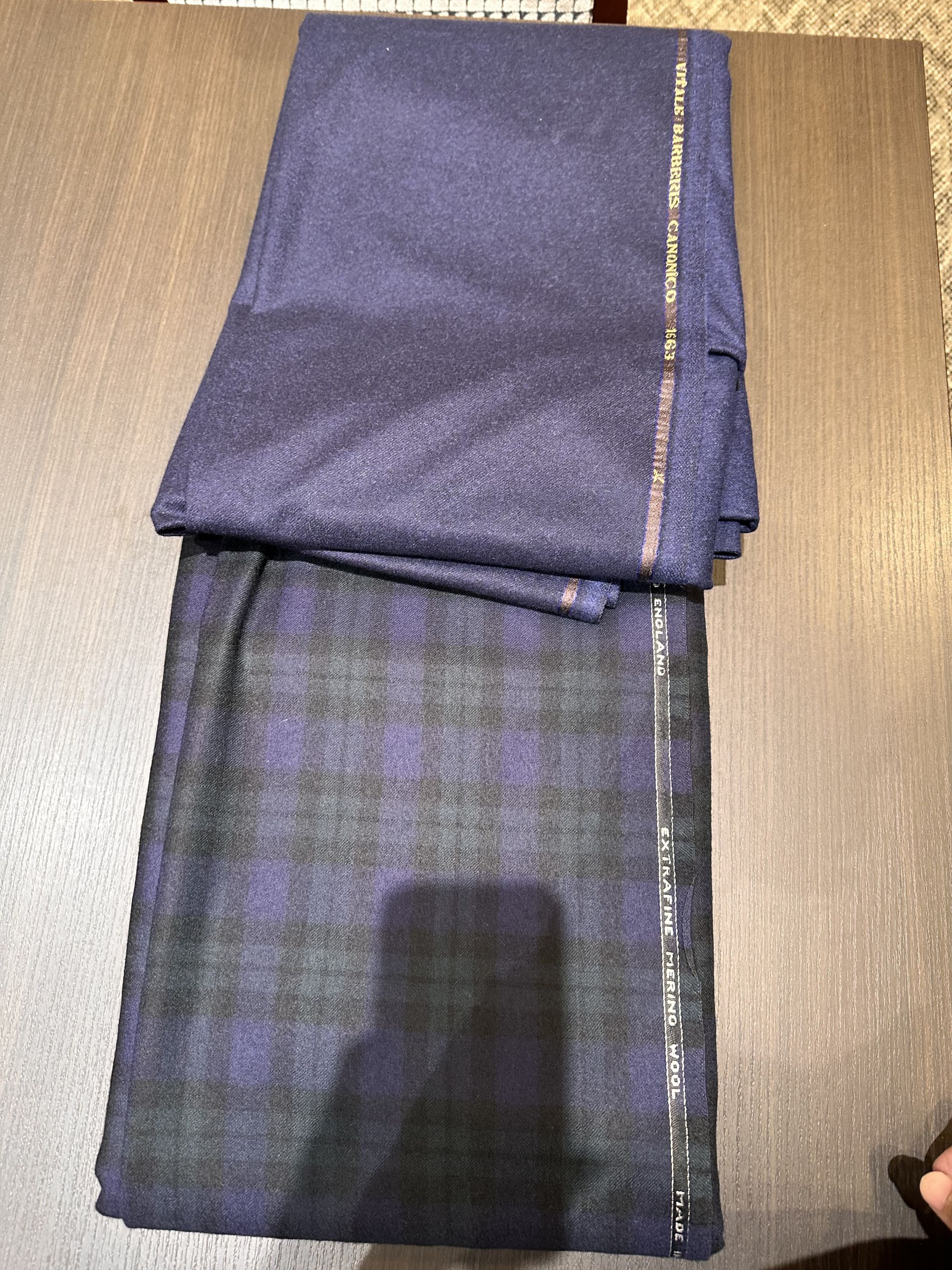 そんなクラシカルな生地にネイビーのブレザー、ジャケットはもちろんダブルで英国海軍チックなジャケットにしては如何でしょうか?