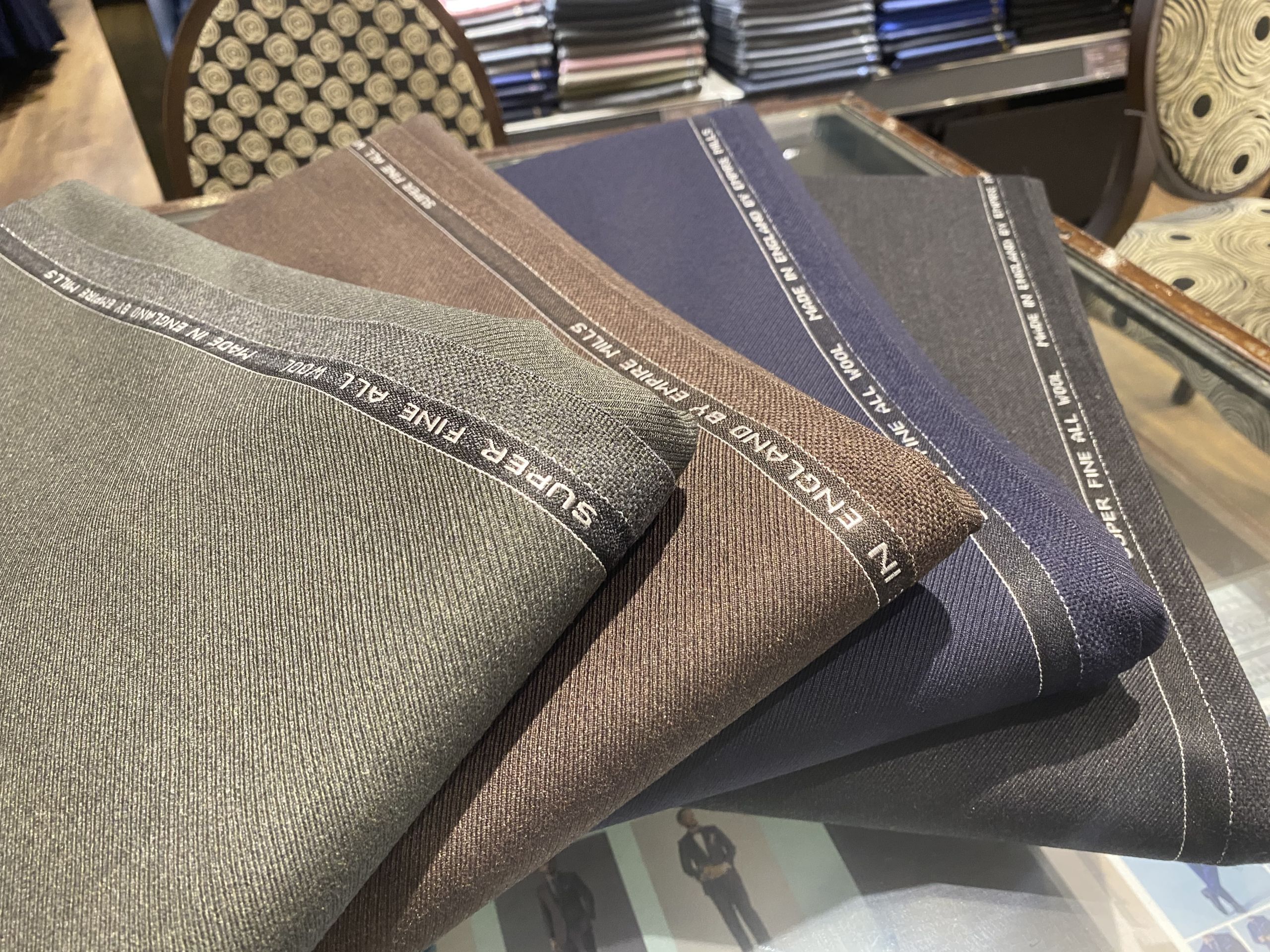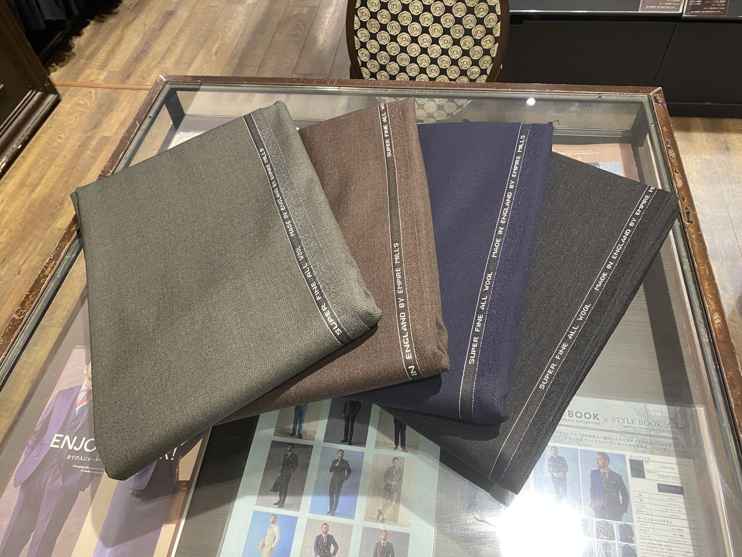 こういった生地で太めのスーツを作ると、立体感が強く出ていい感じになります。