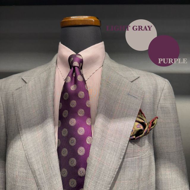 ライトグレーにパープルを合わせたワンランク上のコーディネート