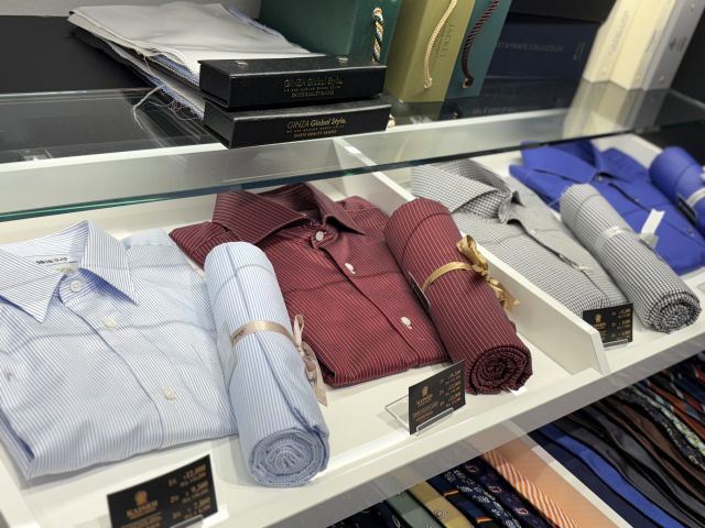 他にもシャツや革靴のサンプルも豊富に揃えておりますので、ネクタイやベルト等の小物類とあわせてトータルコーディネートが可能です!