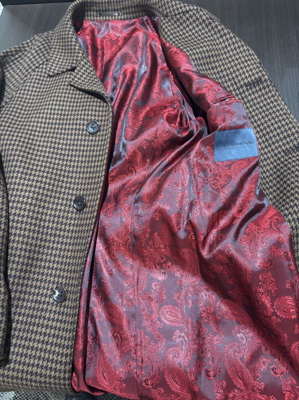 コートは着丈が長くなりますので裏地の存在感も格別です。