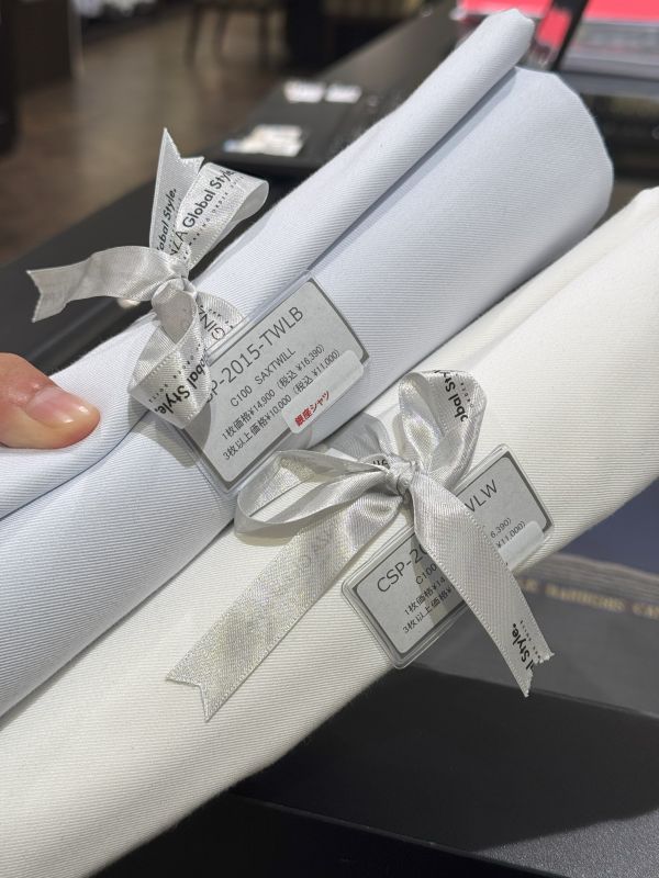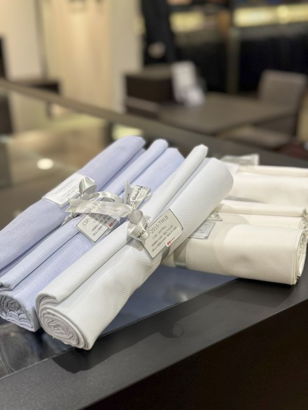 写真のように、『オックスフォード』『ブロード』『ツイル』などご用意があり