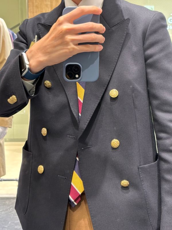 個人的に上記の写真のような、紺ブレに金ボタンは人気の組み合わせですので