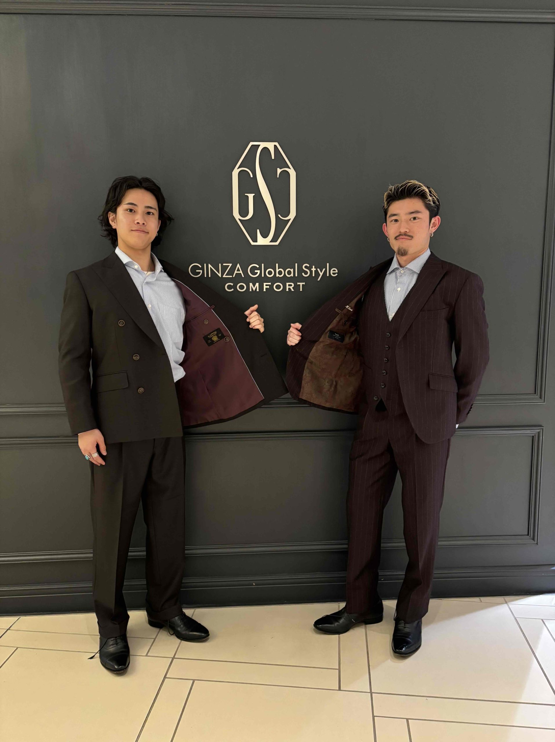 向かって右側の方はイタリア生地:マルゾットREDSTでお仕立ていただいておりまして