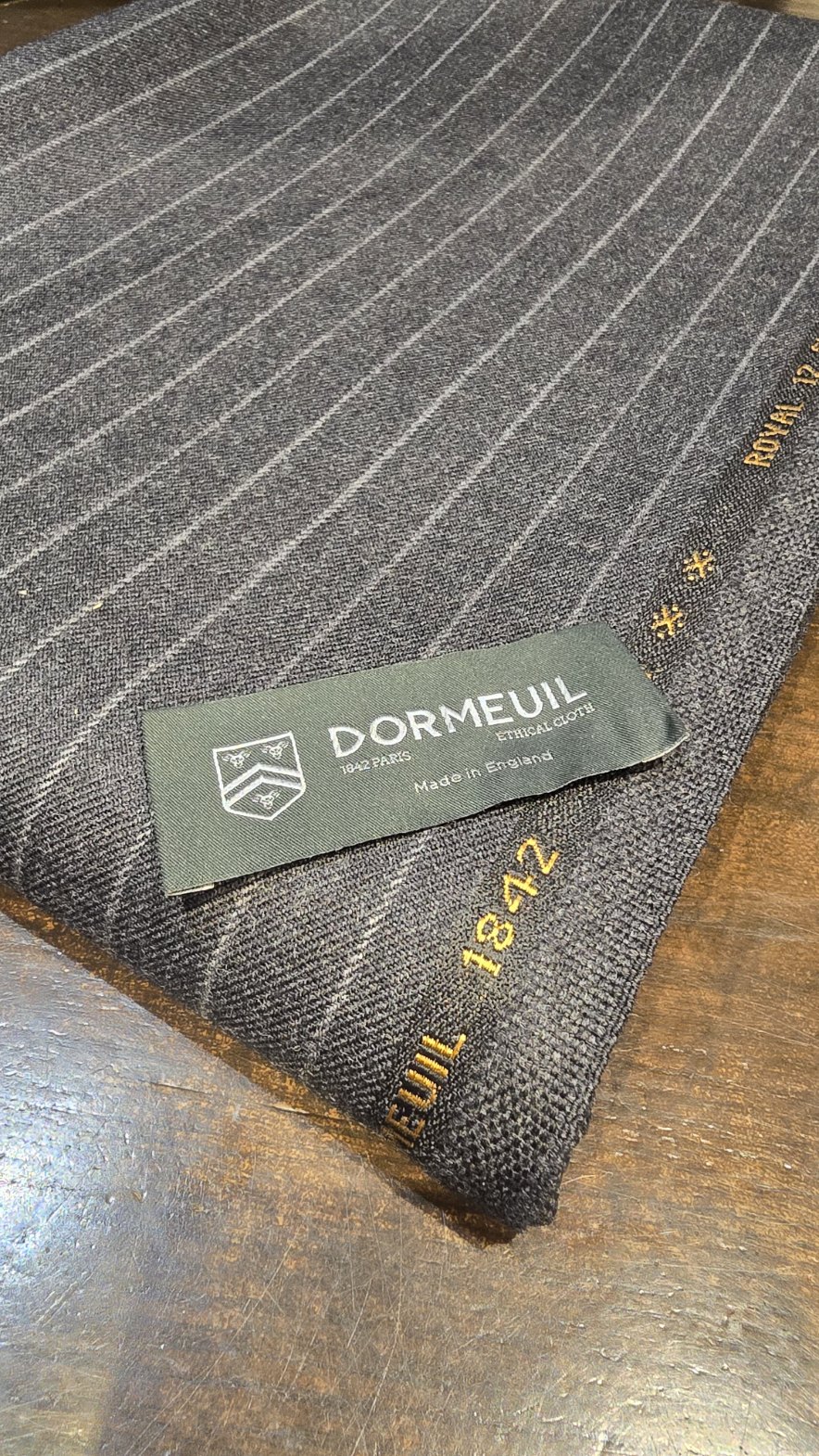 ドーメルは、1842年創業、世界最古の服地マーチャントとして今なお名門の名を欲しいままにする存在。その中でも「ロイヤル12サステナブル」は、英国調の気品と風格を宿した特別なコレクションです。しっかりとしたウェイトが冬にふさわしい重厚感と温もりをもたらし、仕立て上がりは堂々たる存在感を放ちます。