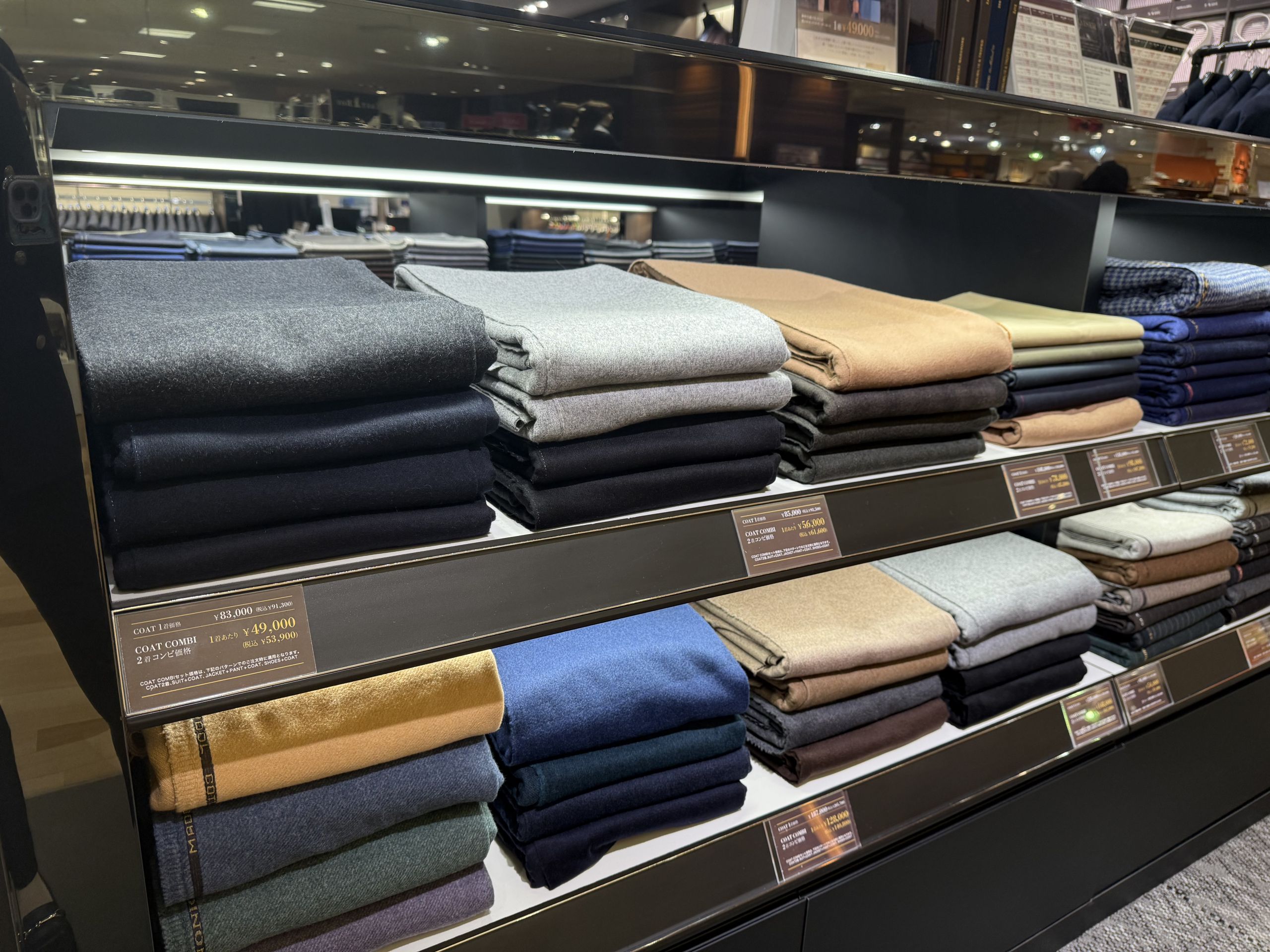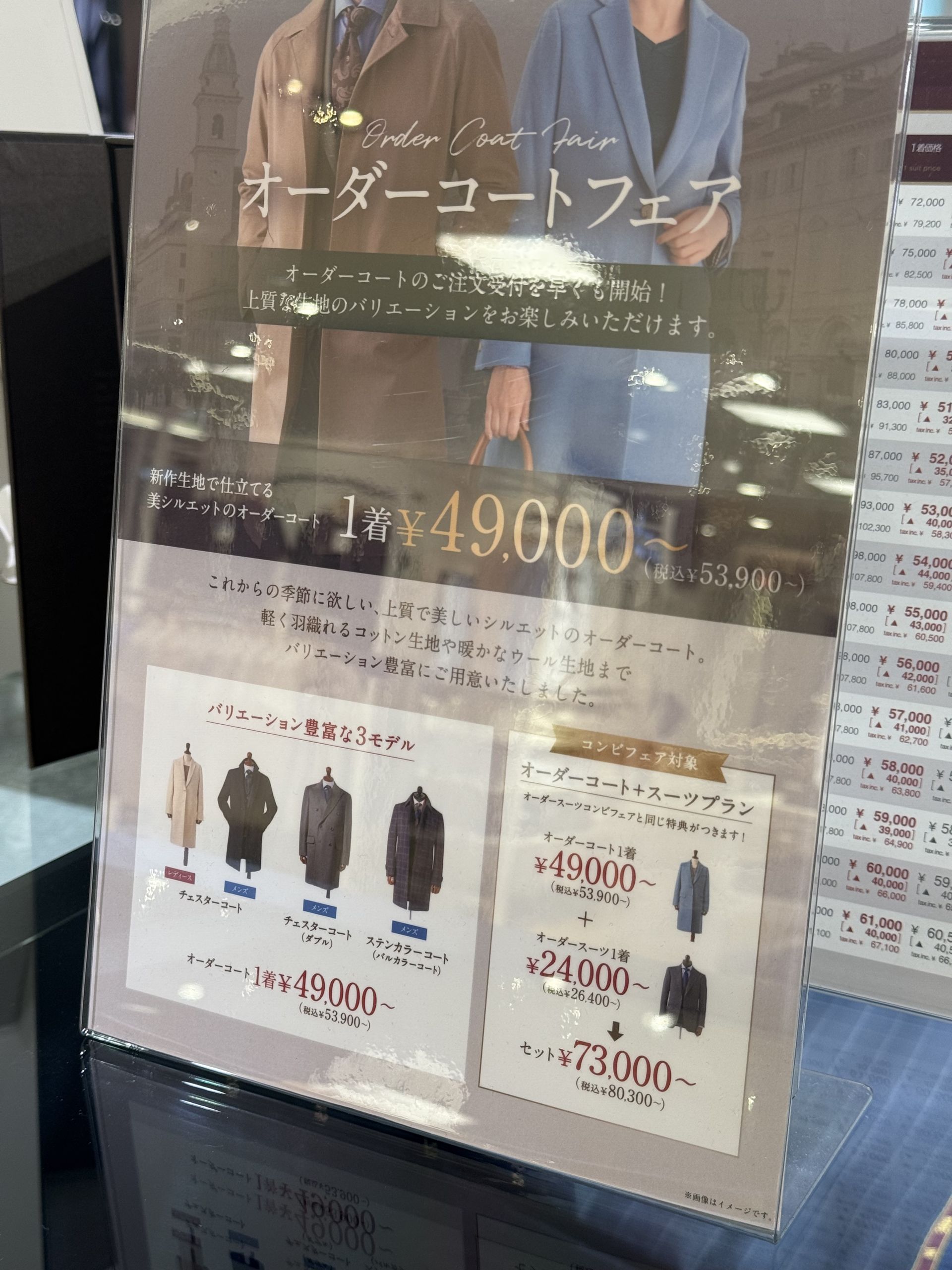 生地は¥49,000~とオーダーコートとしてはかなりお求めやすいかと、、