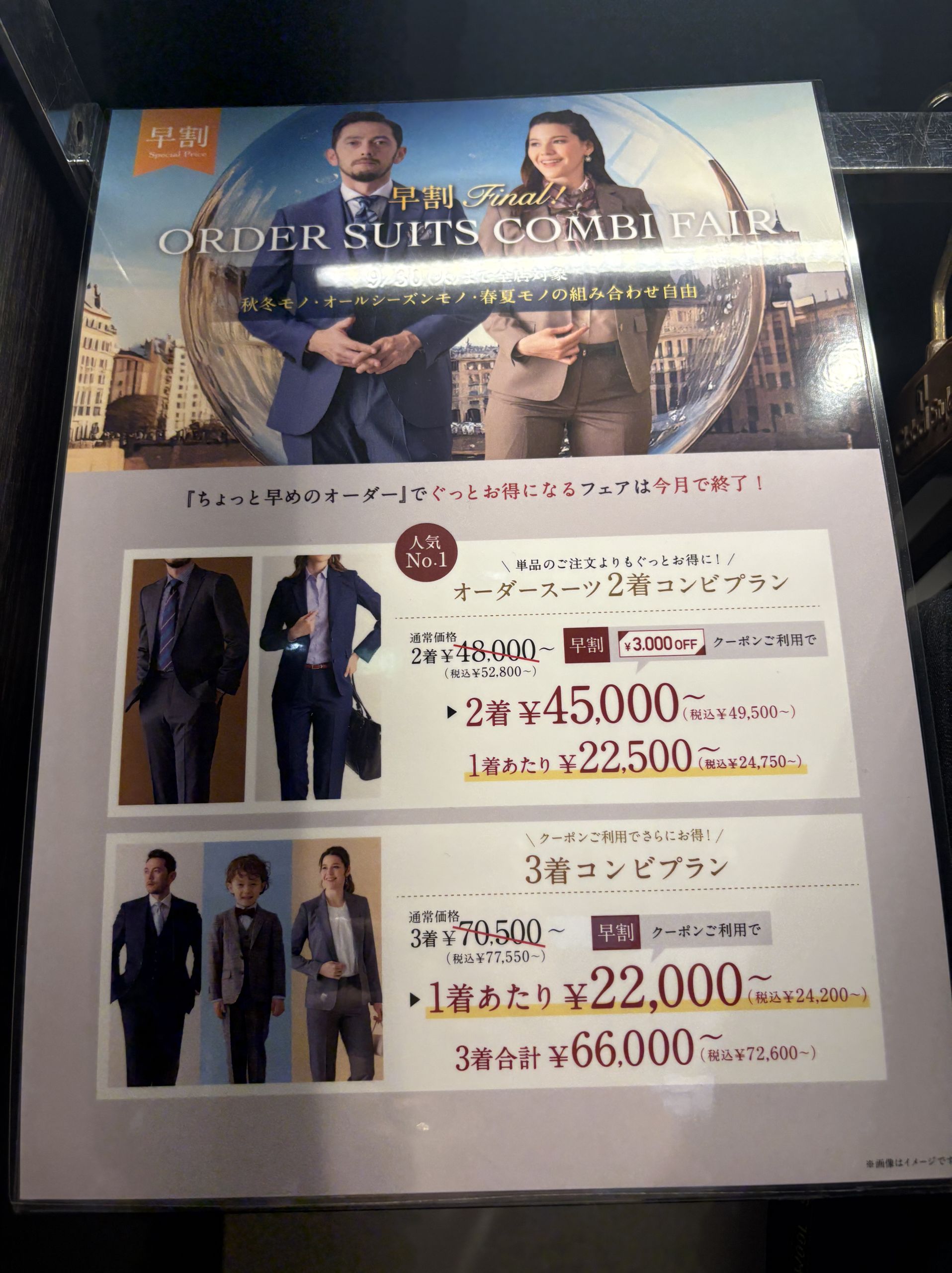 グローバルスタイルではスーツを2着以上まとめてお仕立ていただくと