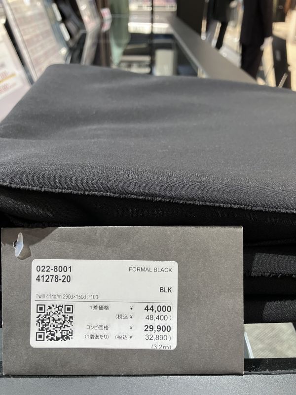 手触りの柔らかいウール100%の礼服は44,000円(税抜き)~でございます。