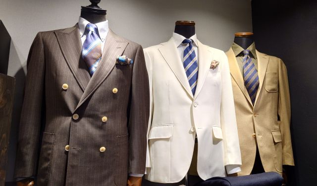 スーツの色味や柄、サイズ感なども参考に見てきていただくとよりスムーズにお作りが頂けます♬