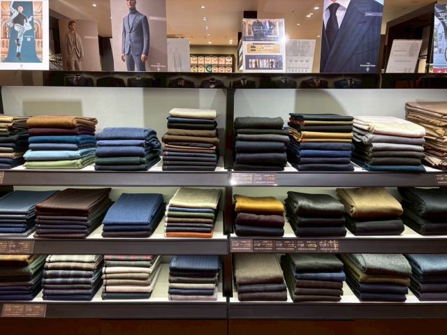 スーツの生地も、
