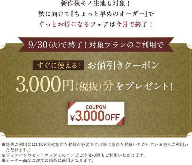 3連休、オーダースーツを買うならぜひ当店へ。