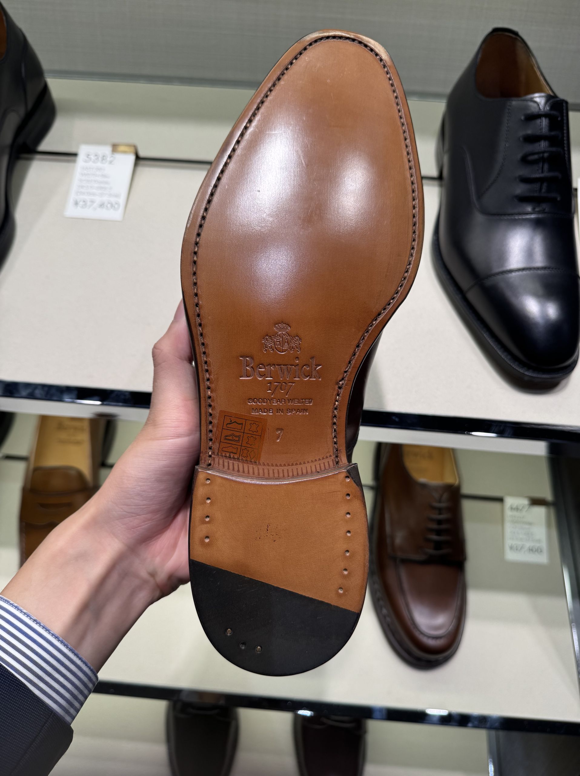 ソールはレザー製、幅があり、甲が低い方におすすめ。