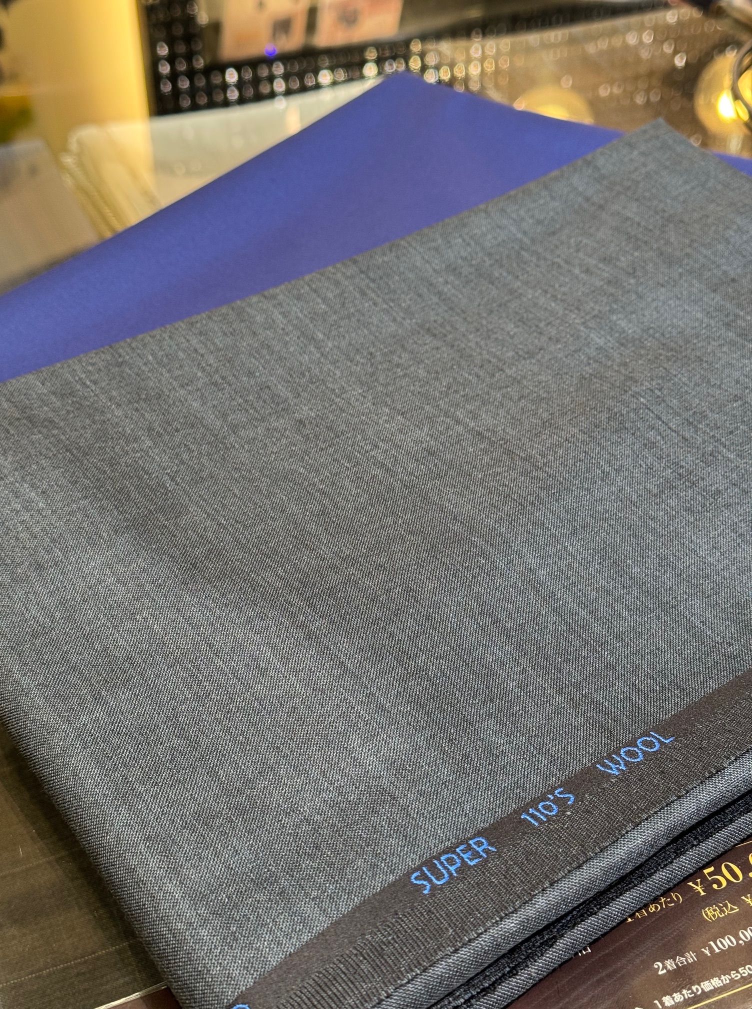 ご紹介した生地はコンビ価格上下¥58,000~(税抜)販売しております。