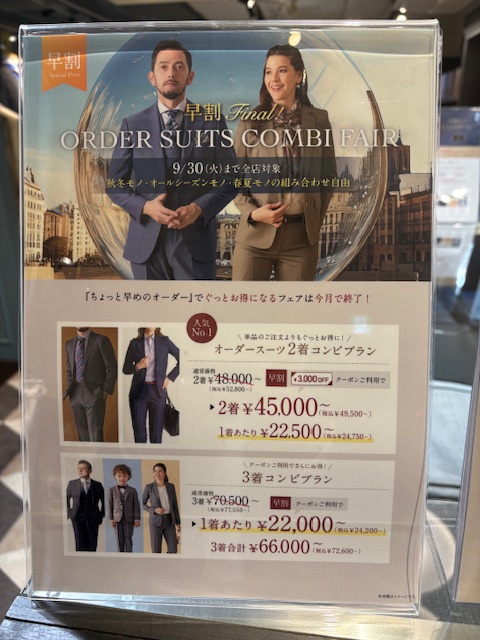 2着でなんと¥48,000-(+税)でスーツがかえるなんてお買い得ですね!!