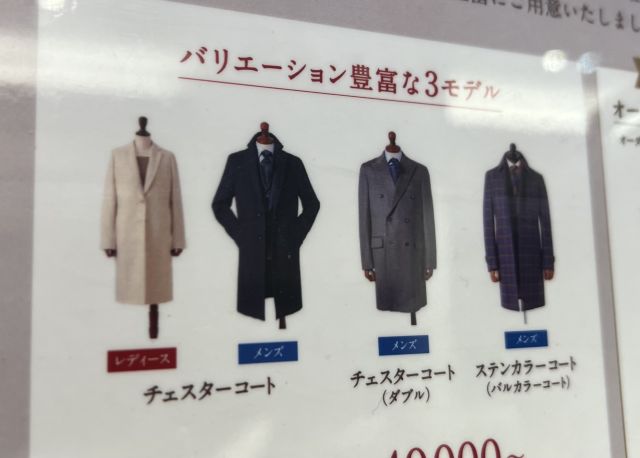 メンズの形はチェスターコートかステンカラーコート(バルカラーコート)