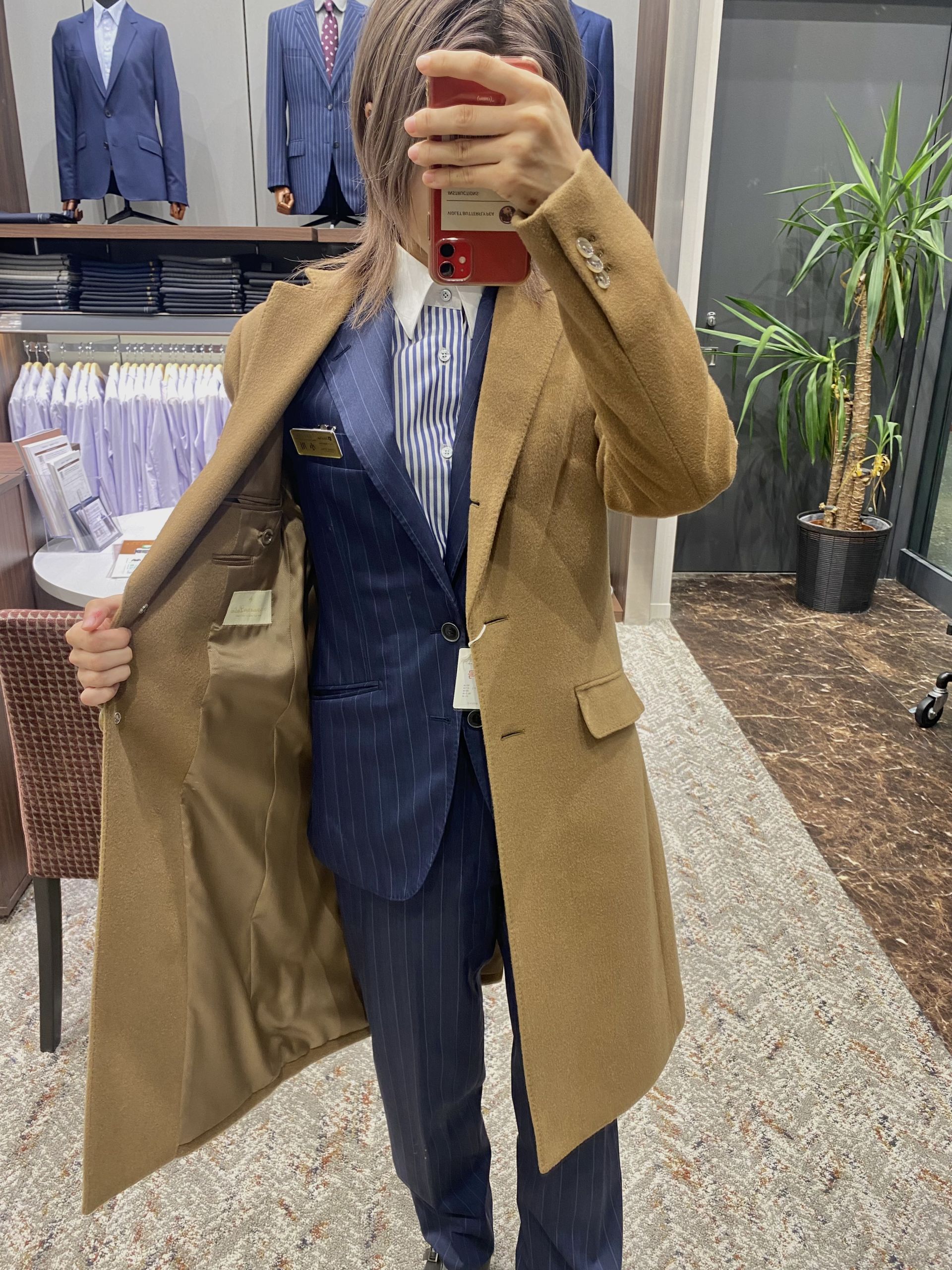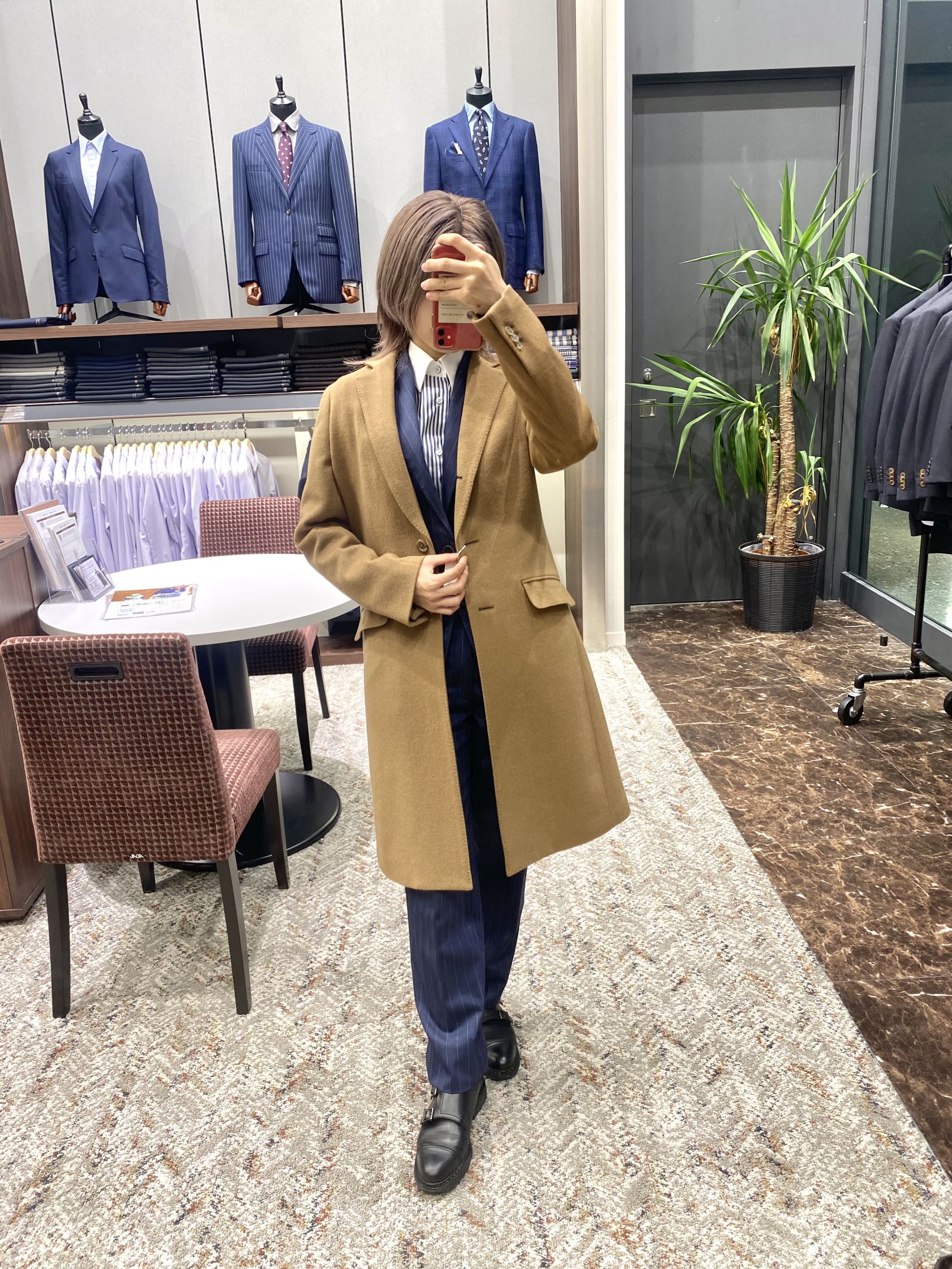 グローバルスタイルでオーダーコートを作っていただくと、スーツに合わせての調整が可能です。