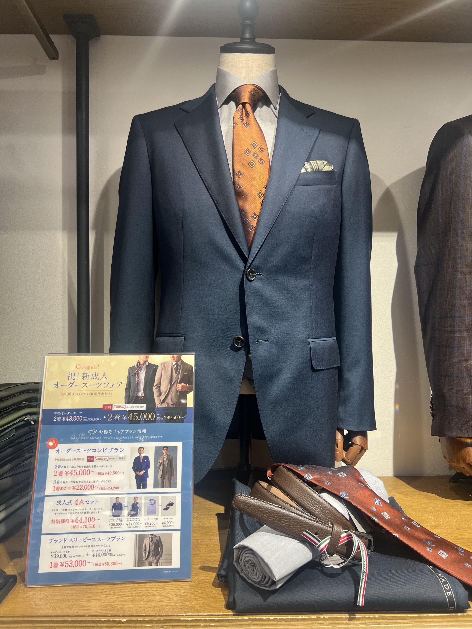 今期の成人式はカジュアルなスーツをお求めの方々が多く少しオーバーサイズなスーツがトレンドかなと私吉川は感じています!