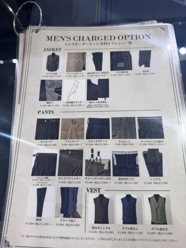 大塚のおすすめは「裏地」「釦」「本切羽」「ベスト衿」「プリーツ加工」です!!