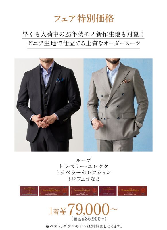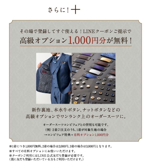 さらにゼニアなどの高級生地を選んでいただくとオプションも割引になります。