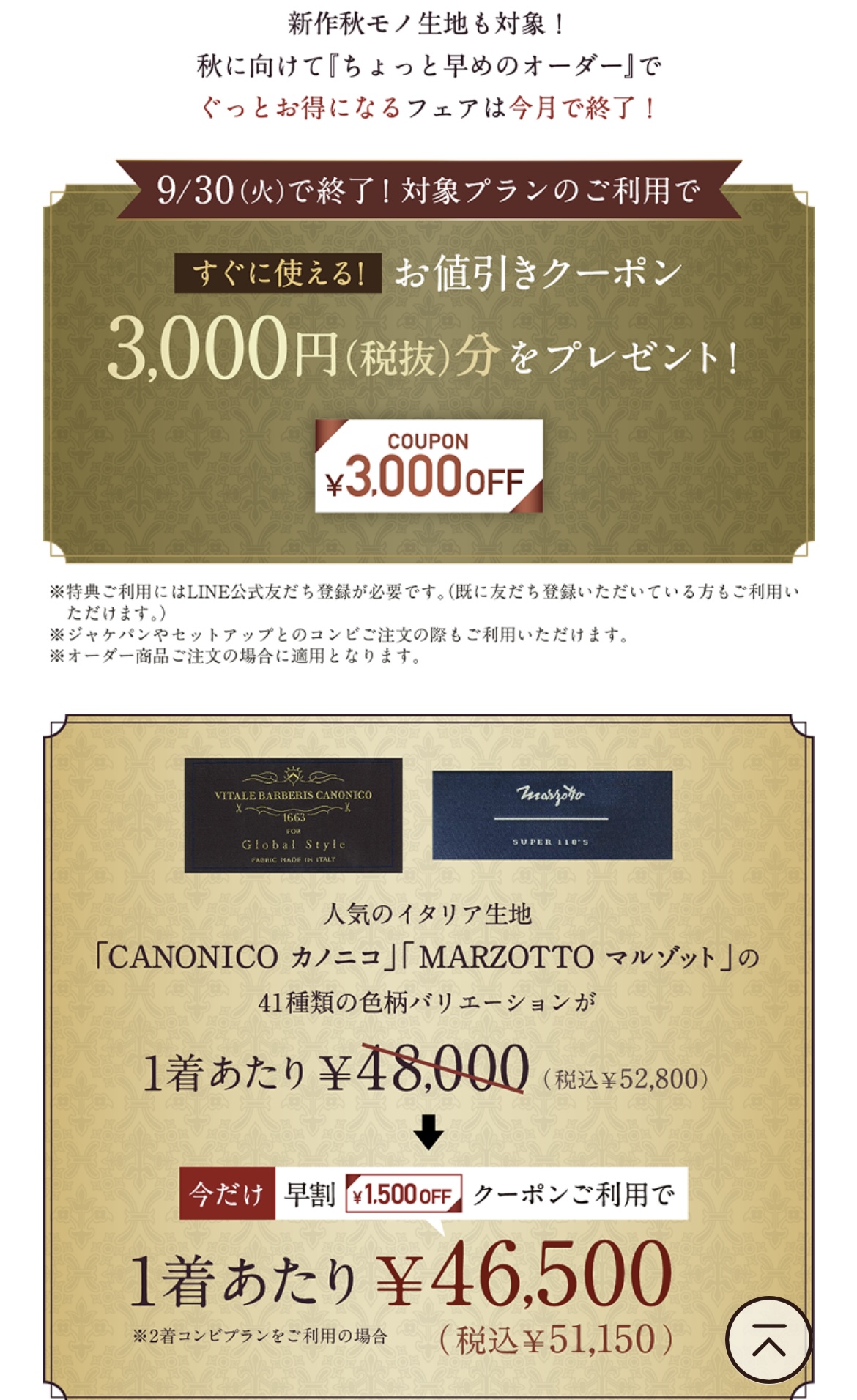 新作秋冬生地も、全ての生地が対象になっているので