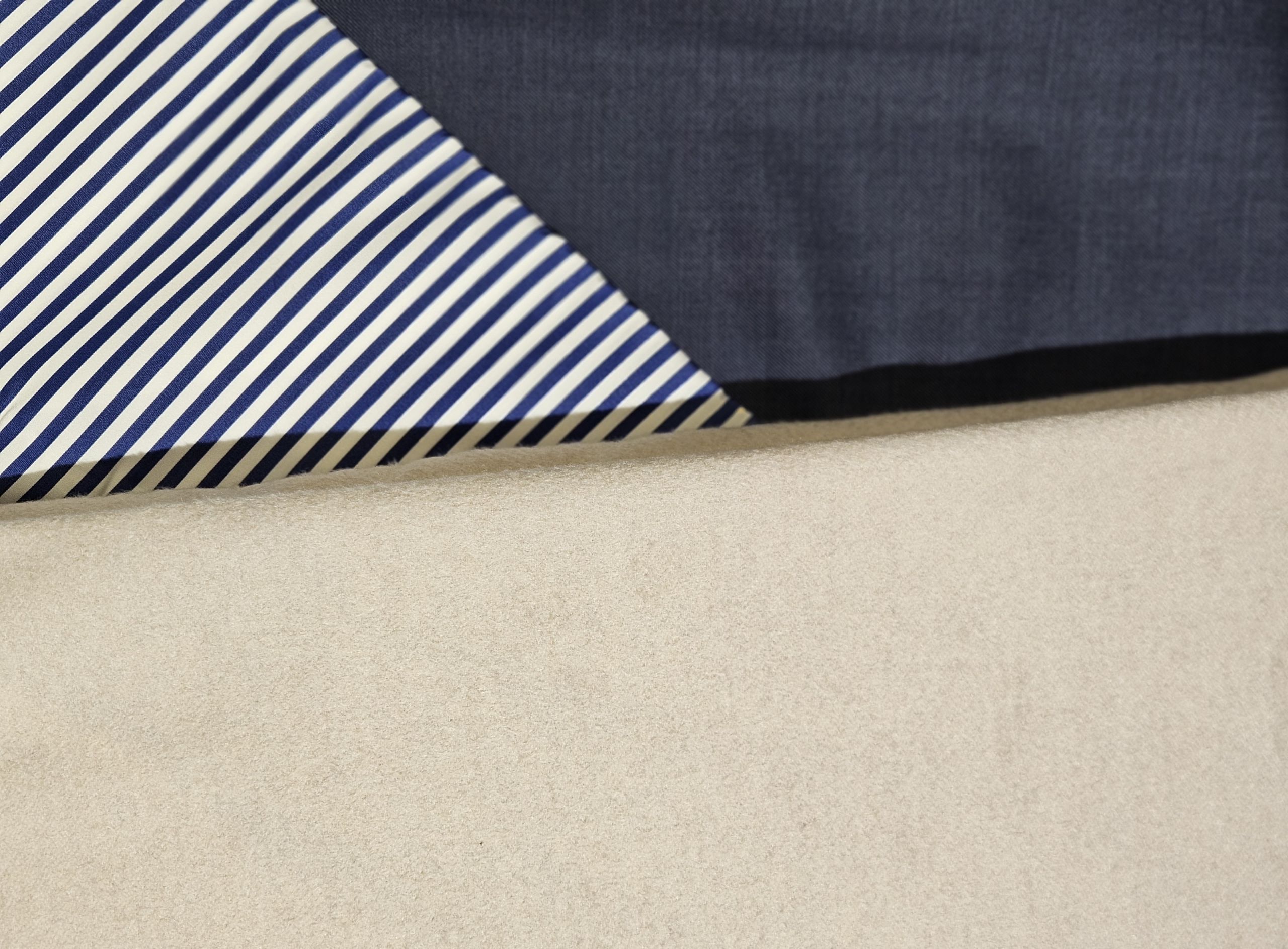 色味の濃いロンドンストライプ柄を中にもっていくことで