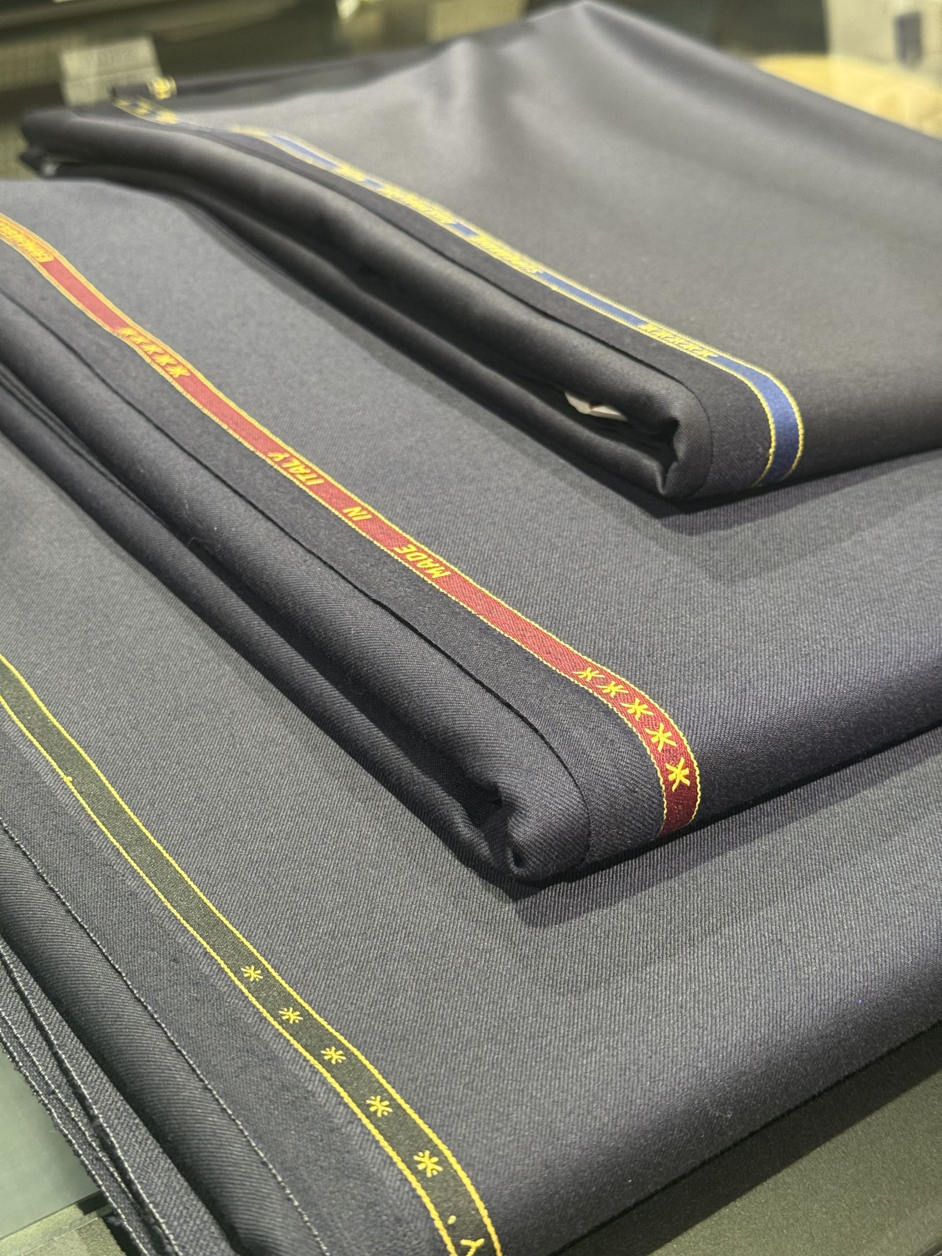 ビジネススーツでも王道のネイビー生地ですがラグジュアリーブランドの生地たちは