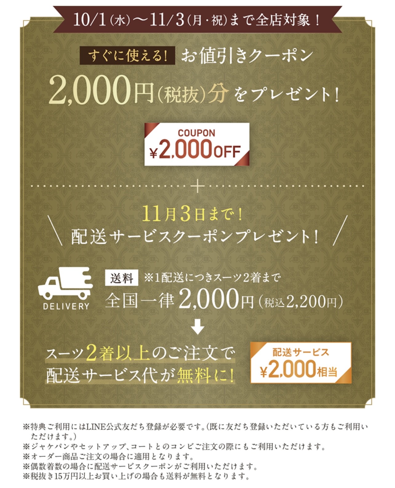 厳密にはスーツ1着あたり【¥1,000オフ】になるので