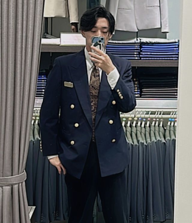 前合わせが二重になっており、ボタンが左右に並ぶタイプのスーツ