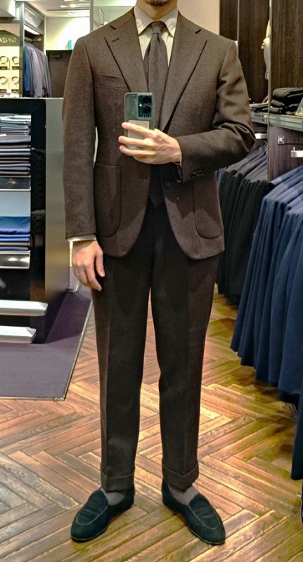 今回の生地は起毛感もあり、完全に秋冬スーツです
